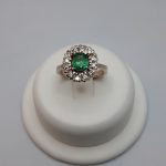 - Anello fiore in oro bianco con smeraldo e diamanti
